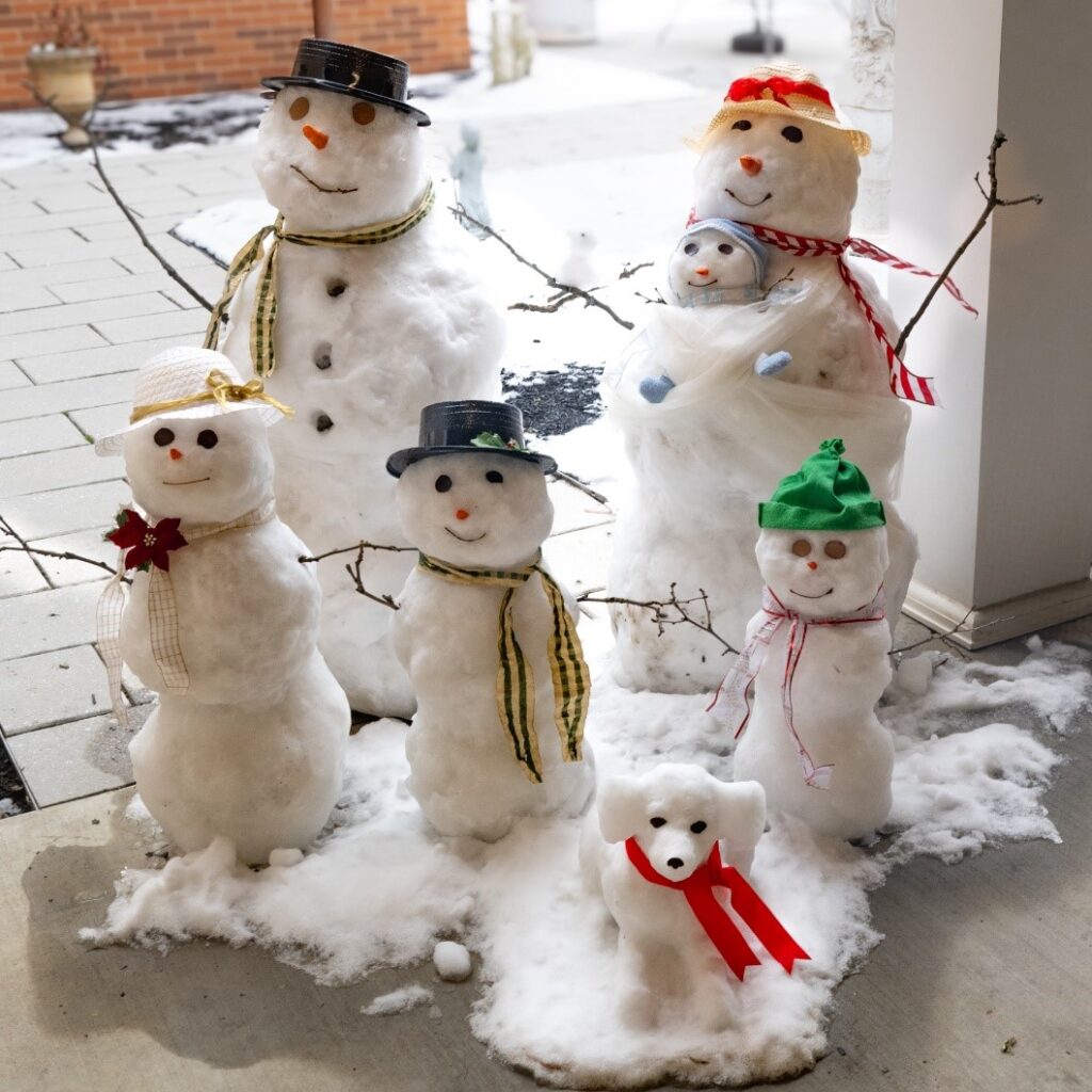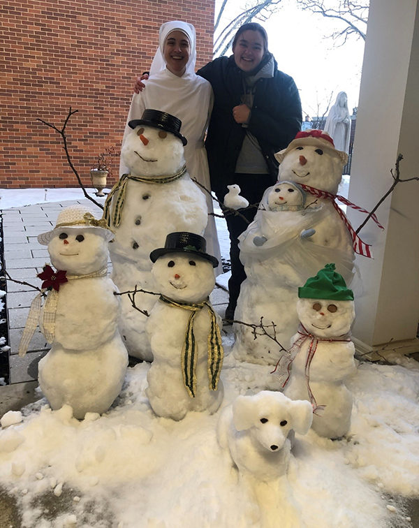 Providence also provided some perfect, easy-to-pack snow as scenery for Christmastime 2025. We took advantage of the snowfall, with valuable help and enthusiasm from our live-in discerner, Ali, to bring back the Snow Family on the patio of St Joseph’s Care Unit.