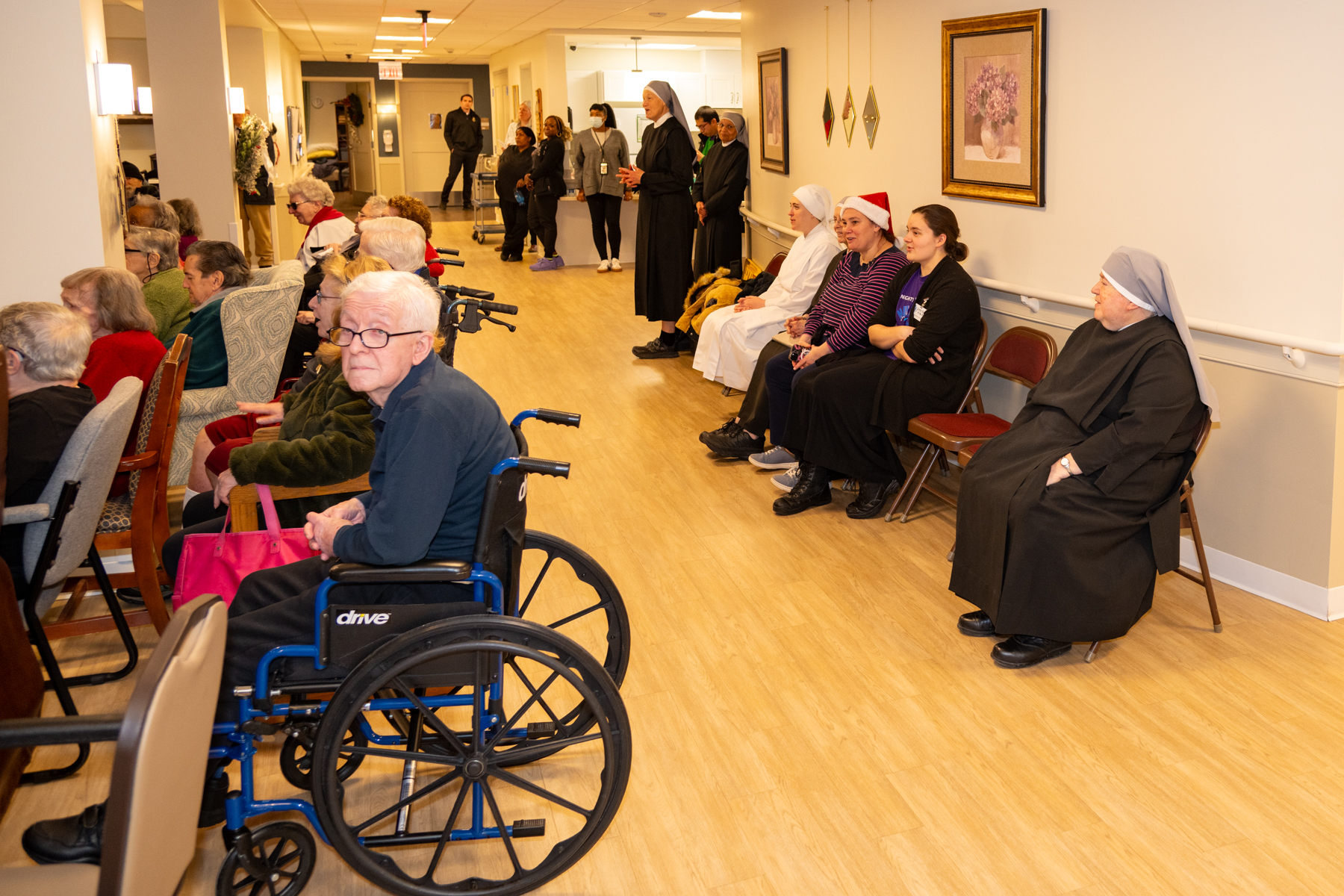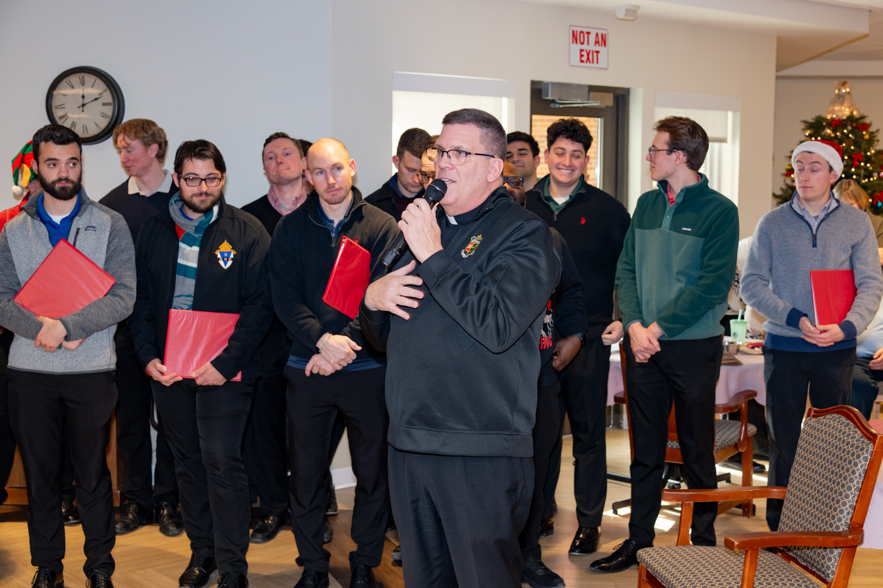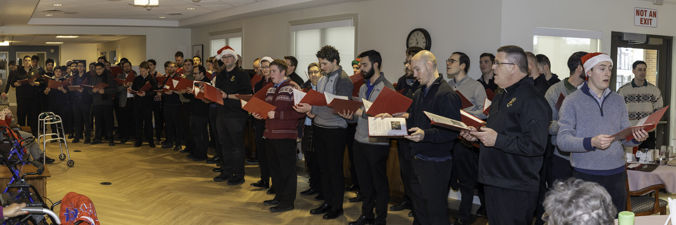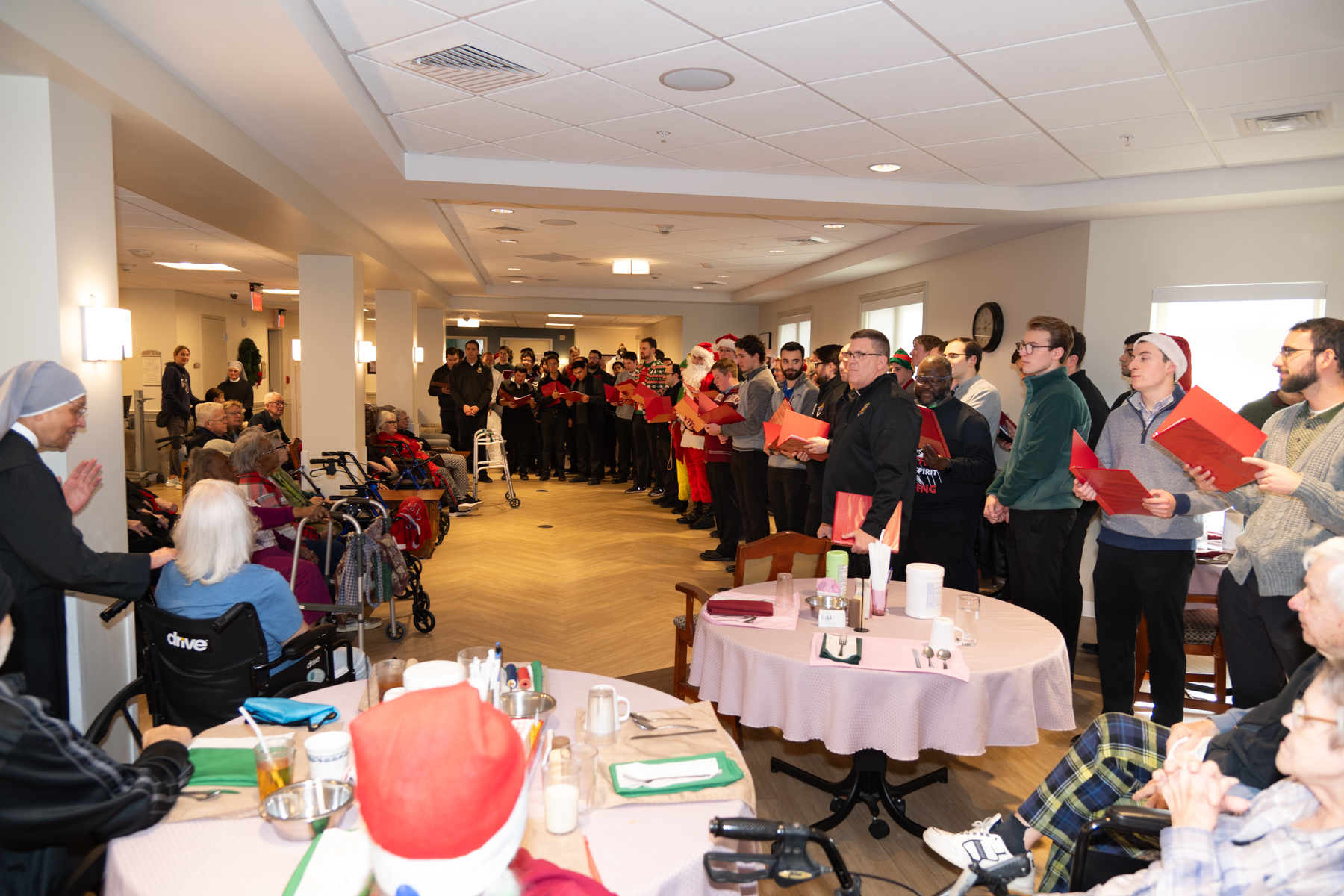 They came – In keeping with a tradition started over 50 years ago, the Seminarians of the Archdiocese of Philadelphia “Came” for Christmas caroling at Holy Family Home (same Home, reconstructed building) on December 17, 2025.