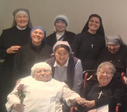 On Saturday, January 31, the halls of Holy Family Home were filled with vibrant energy. With his usual wit, Resident Vince G. declared, “We’re being overrun with nuns!” He eyed 31 Sisters, from seven congregations, who had come together with our 12 Little Sisters of the Poor, to mark the World Day of Prayer for Consecrated Life.