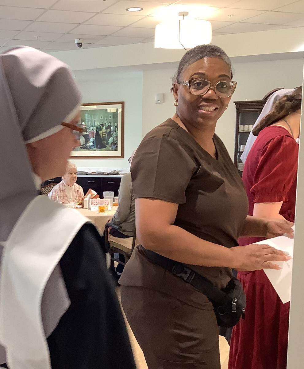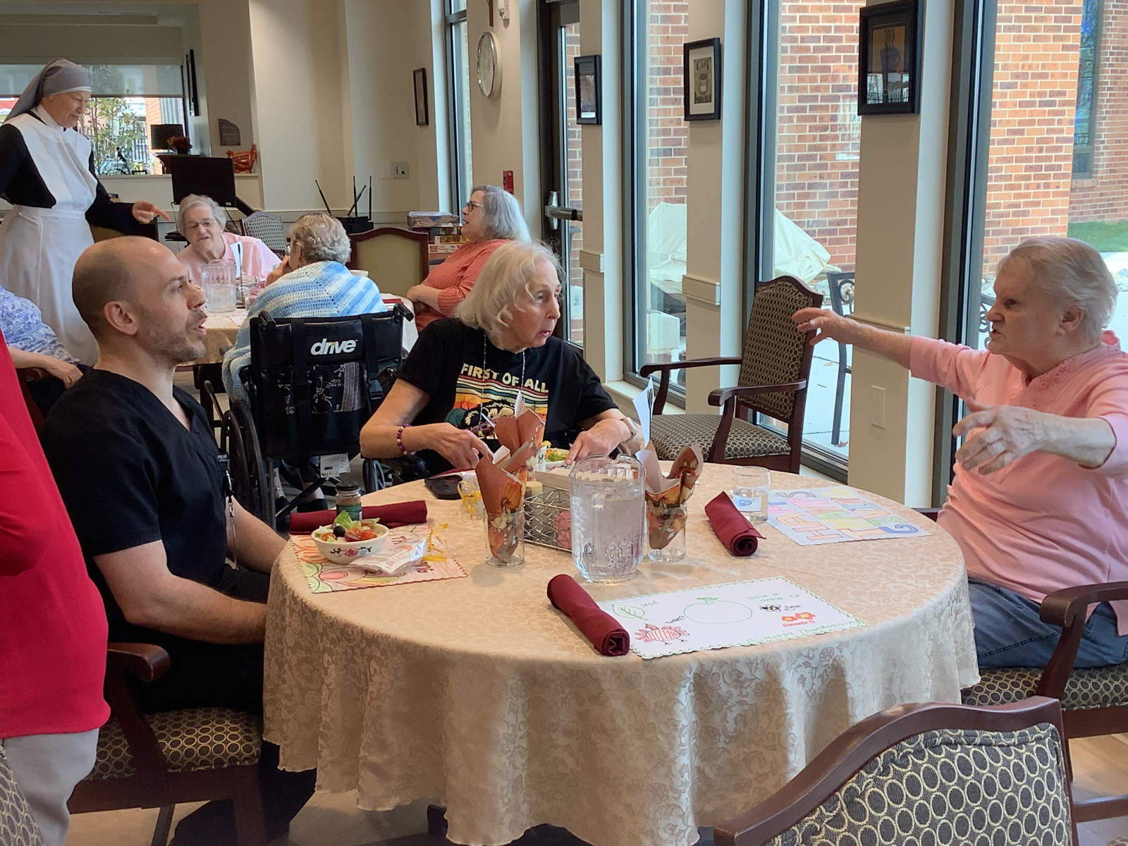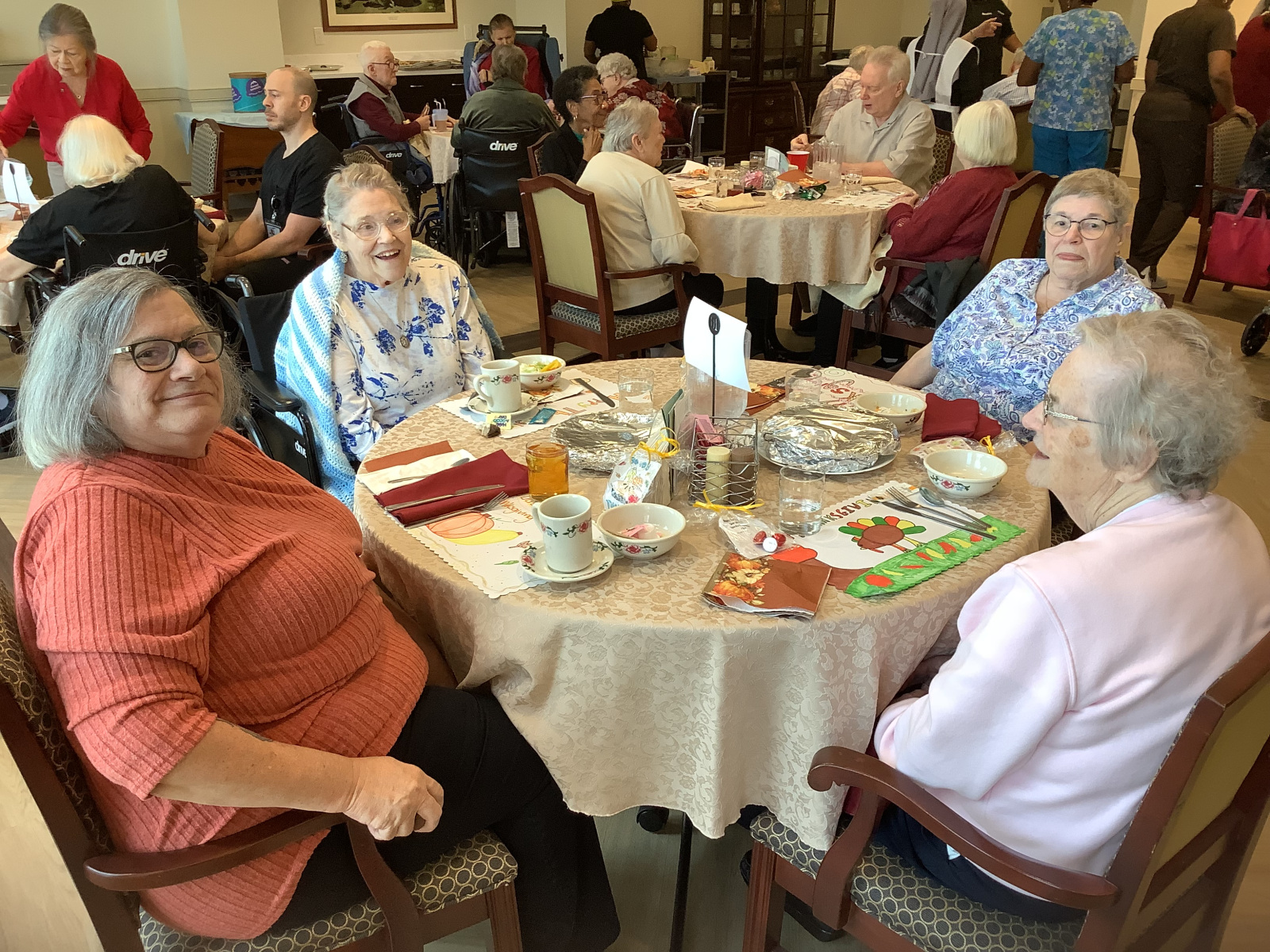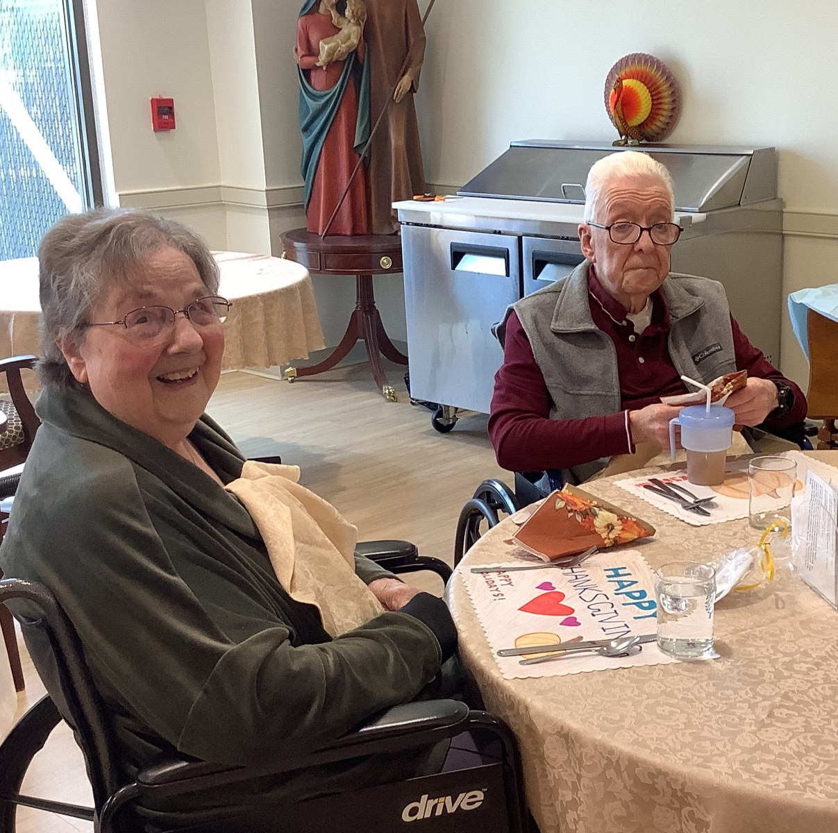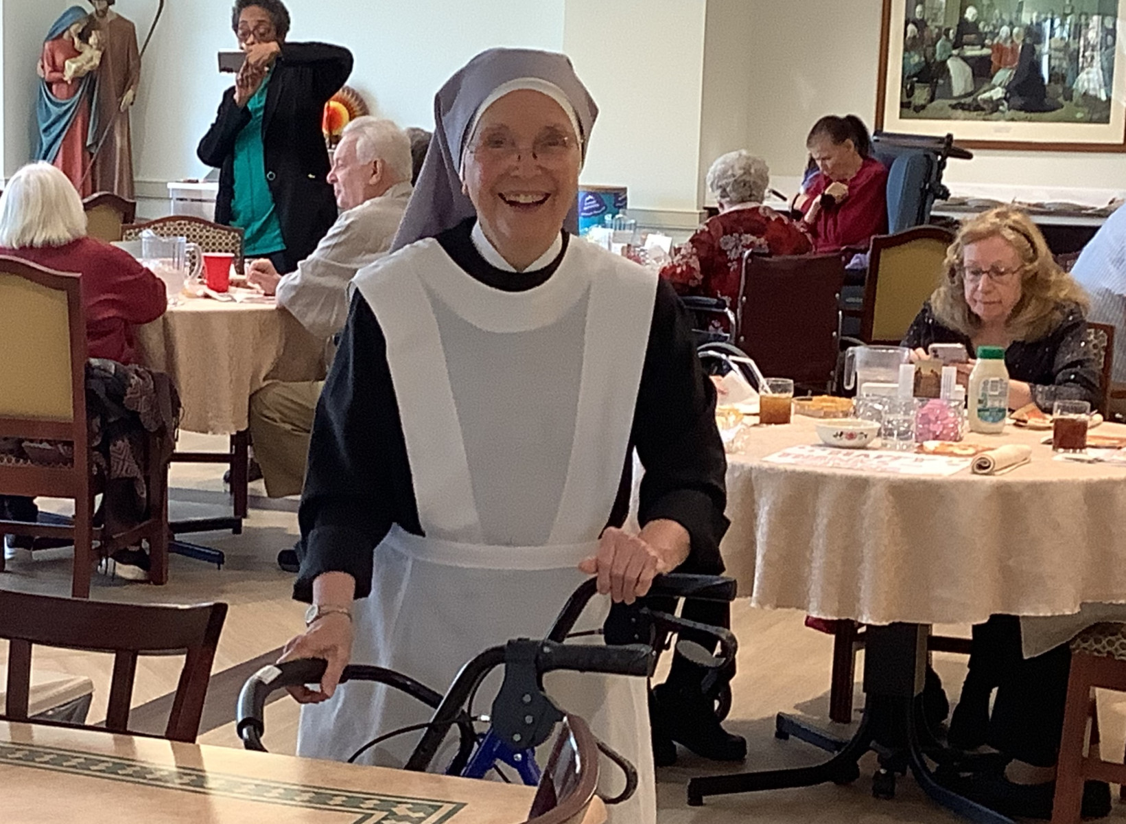 Thanksgiving Day 2025 was the first federal holiday dedicated to expressing gratitude to God in our recently renovated Home. We hope that we started a new holiday tradition by gathering in the apartment dining room, for our festive meal, all our Residents from both St Joseph’s Care Unit and the Apartments. Residents, old-timers and new comers, agreed that it was “good to be together.” Little Sisters and Staff were happy with this arrangement as well. It enhanced the family spirit.