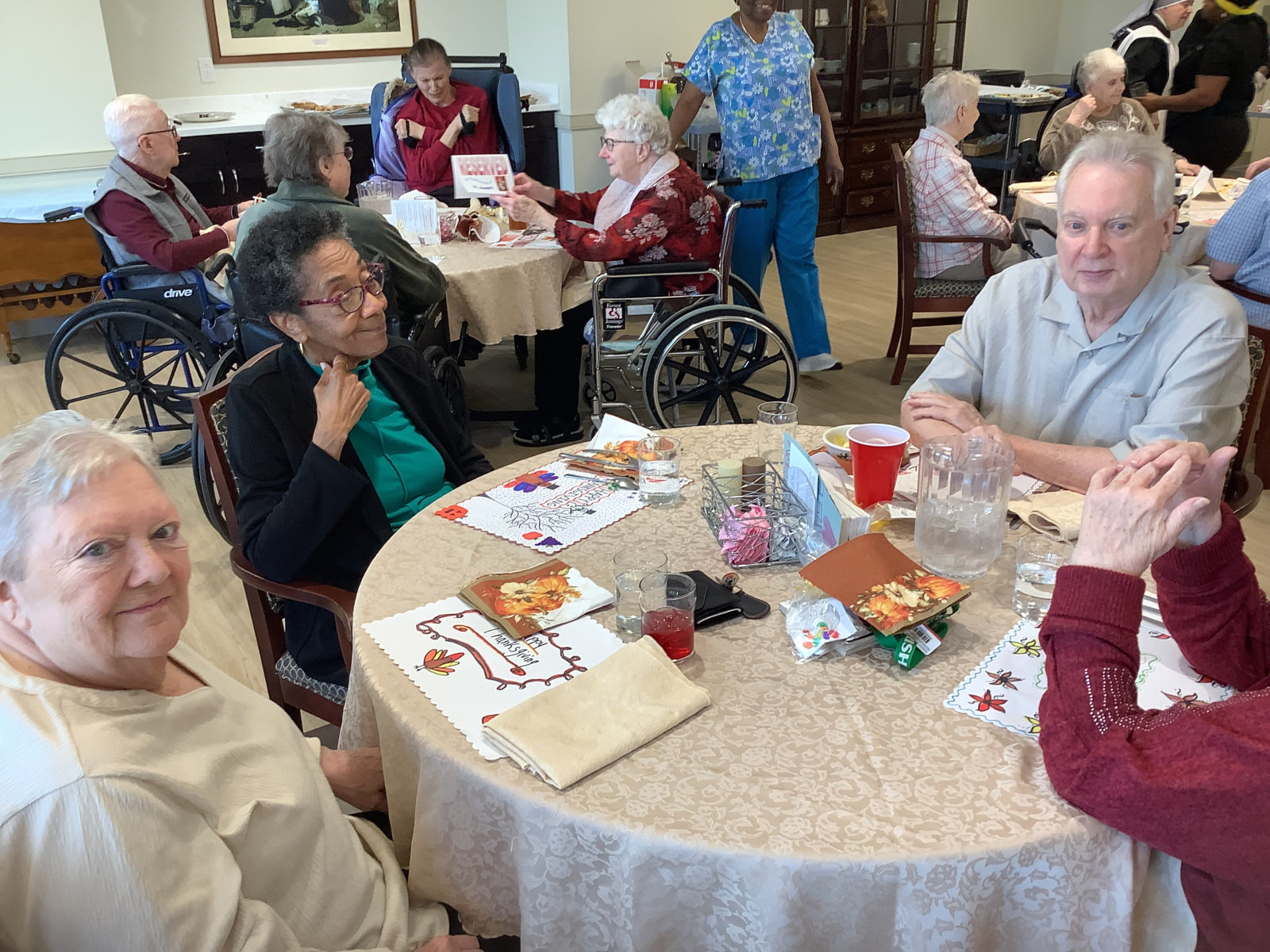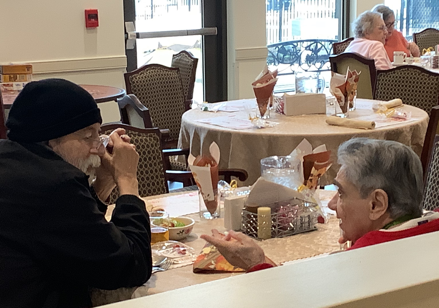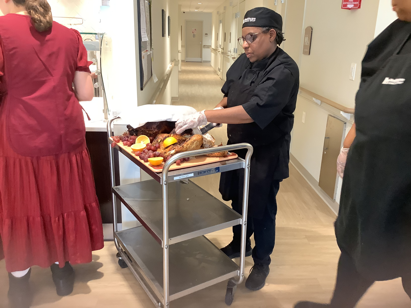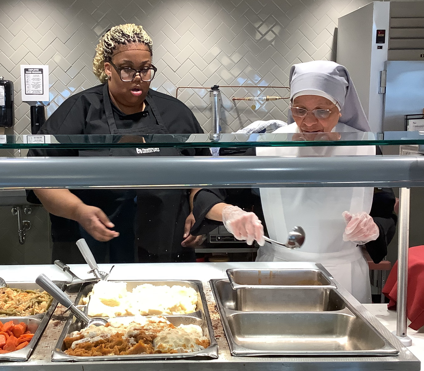 Thanksgiving Day 2025 was the first federal holiday dedicated to expressing gratitude to God in our recently renovated Home. We hope that we started a new holiday tradition by gathering in the apartment dining room, for our festive meal, all our Residents from both St Joseph’s Care Unit and the Apartments. Residents, old-timers and new comers, agreed that it was “good to be together.” Little Sisters and Staff were happy with this arrangement as well. It enhanced the family spirit.