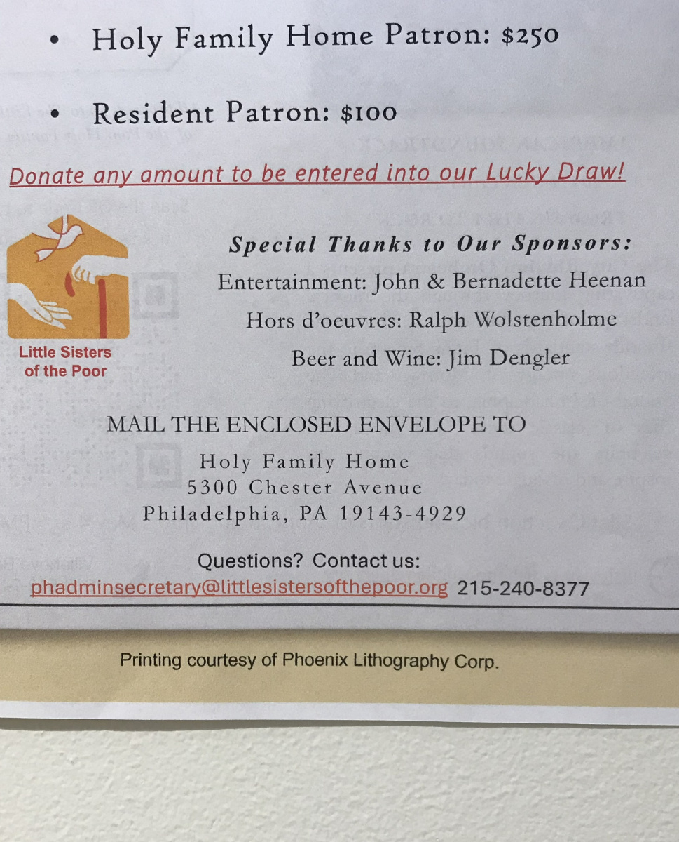 We are incredibly blessed by our friends, the Augustinians. Every year, they generously open the doors of the stunning John & Joan Mullen Center for Performing Arts to the Little Sisters of the Poor, allowing us to host our fundraiser free of charge. This beautiful venue provides the perfect stage for an evening of music, community, and joy.