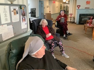 Finally, for this second year of the Eucharistic Revival, we decided to invite the Residents to view, each week, a segment of free resources provided on the USSCB Eucharistic Revival Website and to share in a short discussion. Following the first get-together, Resident Mary Lou reflected on how, being a convert to Catholicism, she has grown, over the years, in her devotion to the Eucharist, especially since living at Holy Family Home. Mary Lou savors her daily visits with Jesus present in the tabernacle of the Oratory created on the Apartment Floor for adoration during the renovation of our former Chapel. Resident Dorothy said, “I was well indoctrinated into Eucharistic piety as a child, but now I need this help getting my grans to receive and love Holy Communion like we were taught.” After the sharing, one Resident mentioned privately that he thought the first presentation was a bit too elemental for our committed Catholic Residents. He said he would like to learn more from the Fathers of the Church. The two Little Sisters who participated liked going back to basics because each time we review the rudiments of our faith; we’re in a different place and can discover new depths of meaning.