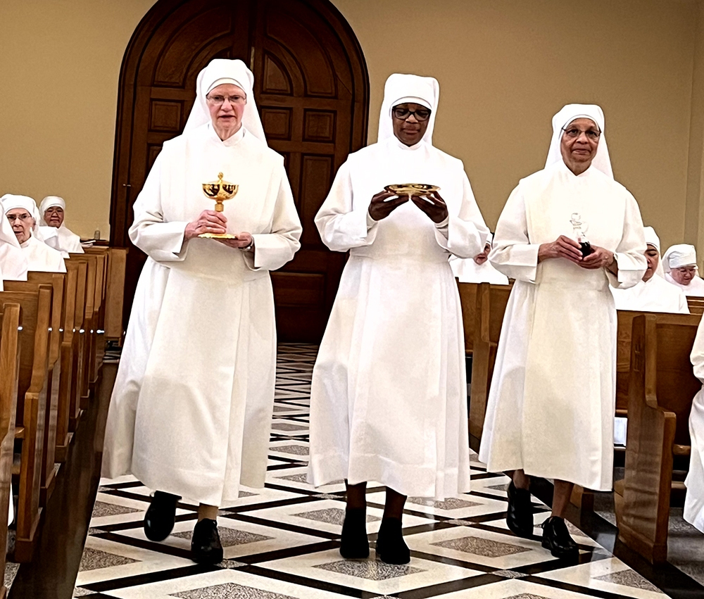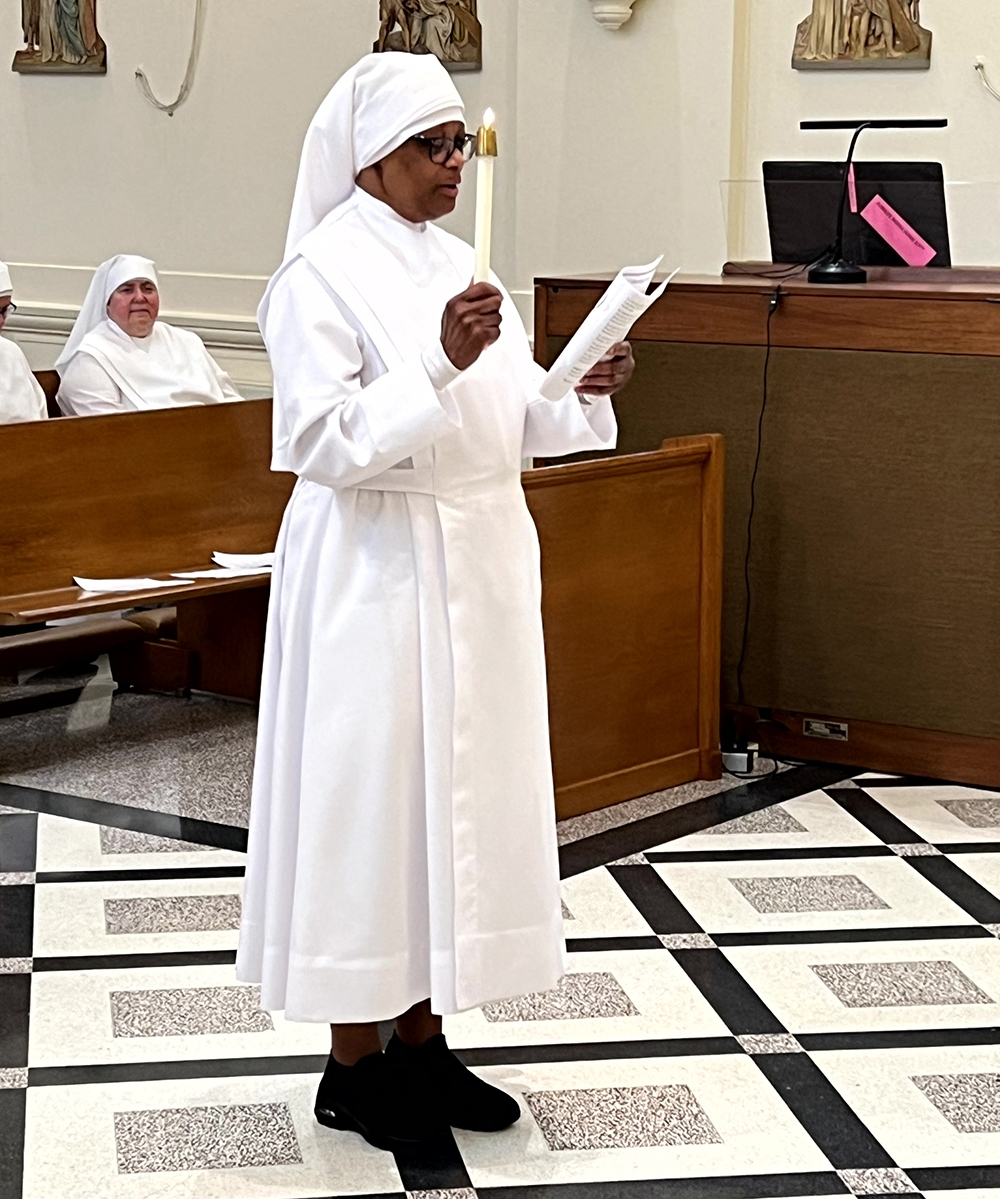 Father Mark always marvels at the multicultural richness of our Congregation. Sr. Emmanuel and her two sisters and a cousin attended the celebration. He also remarked a unique feature of Sr. Emmanuel’s Silver Jubilee – it was that it was taking place in the very Chapel where she made her first profession 25 years ago. Due to the building project in Philadelphia, where Sr. Emmanuel is currently missioned, there was no room in the little temporary chapel there to allow family, friends, and nearby Little Sisters to assemble to mark this event. The happy result was that it was transferred to Queens Novitiate.